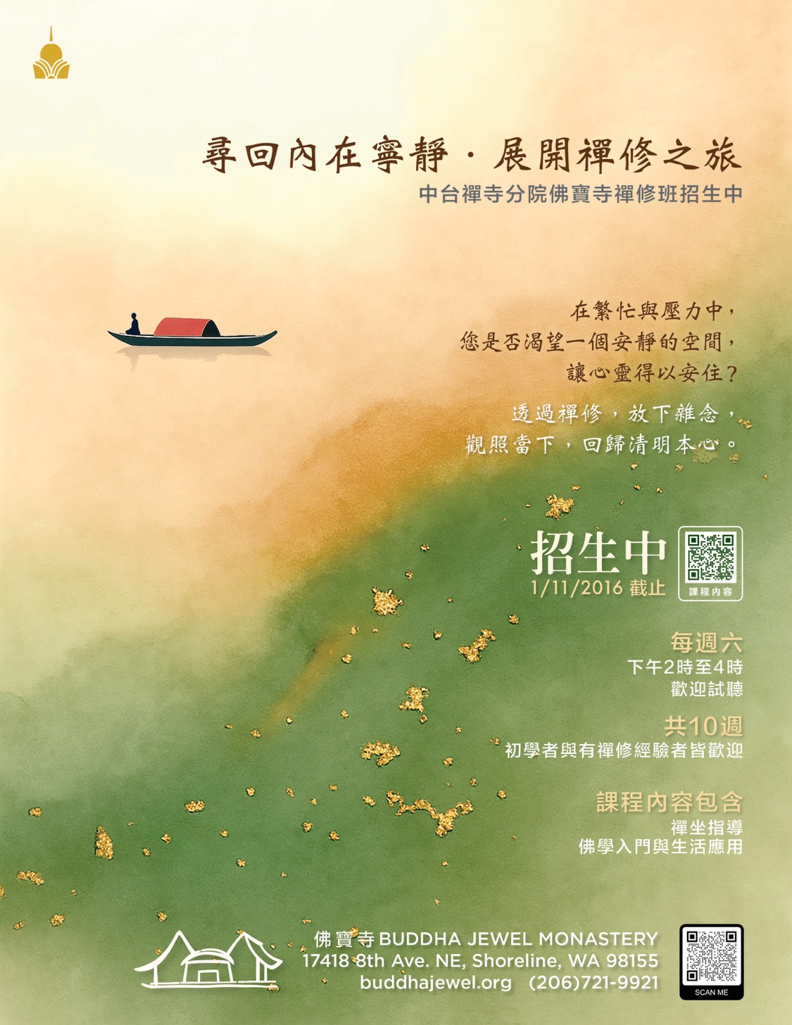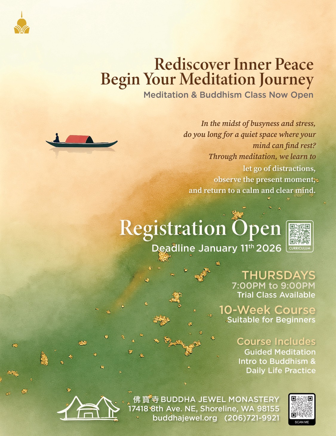 • All Dharma events and classes are free of charge. We are supported by generous donations from our members. Any donation is appreciated and will benefit yourself and others.